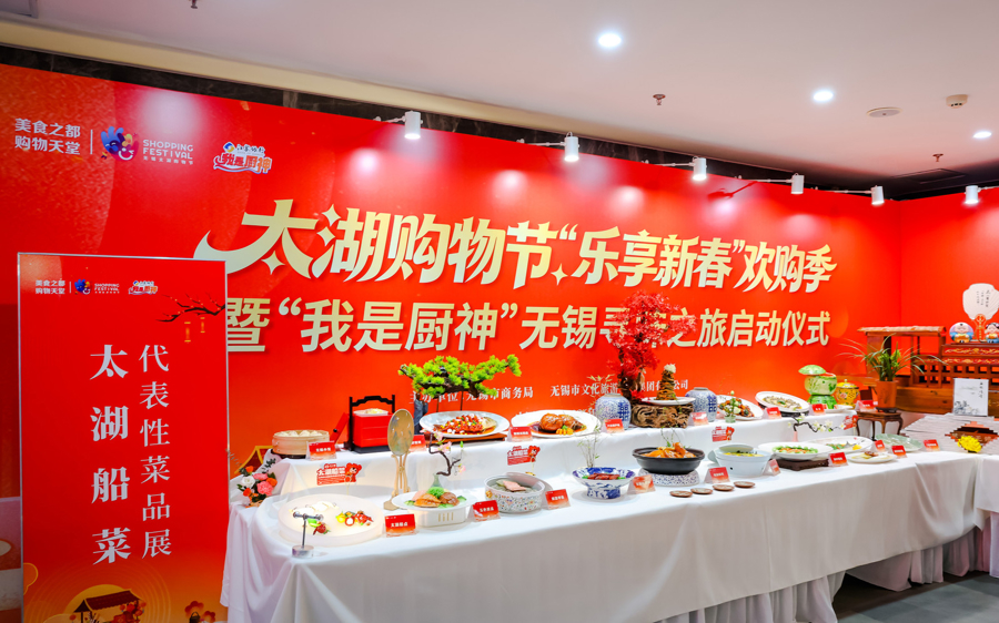 形似宝塔的梁溪脆鳝、色泽红亮的无锡酱排骨、Q弹清爽的水晶虾仁……1月25日,2026太湖购物节“乐享新春”欢购季暨“我是厨神”无锡寻味之旅启动仪式在江苏无锡惠山古镇举办。多家老字号带着招牌产品亮相现场,无锡人记忆中的年味儿在可以一站购齐。据悉,此次活动还面向来锡旅客推出高达8888元的消费大礼包,覆盖零售、餐饮、住宿、文旅等八大领域,为远道而来的旅客送上的甜蜜见面礼。