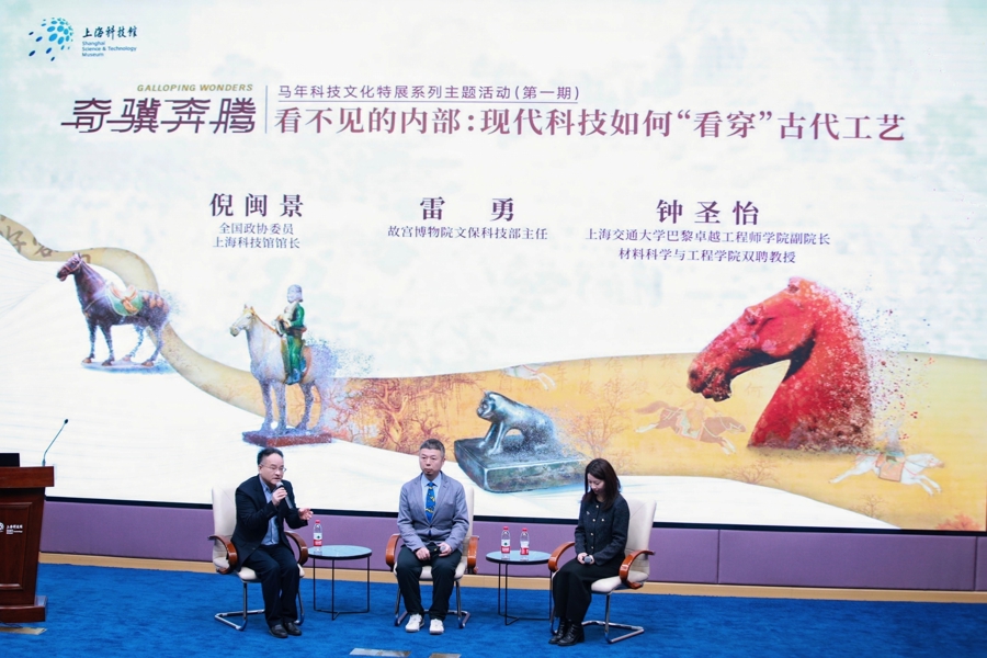 日前在上海科技馆与故宫博物院联合推出的“奇骥奔腾——马年科技文化特展”系列主题活动上,两位科学家带领观众跨越时空,借助现代科技,揭开文物“看不见的内部”之谜。