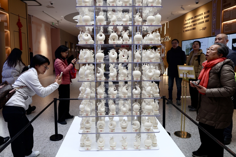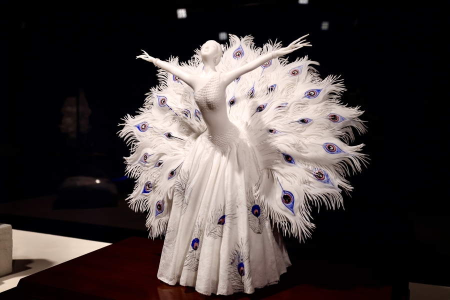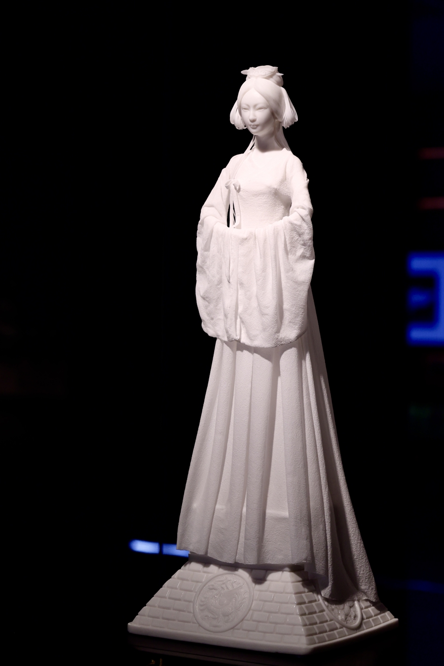 值得一提的是,曾在全网引发热潮的“玉漱公主”白瓷塑像也随展亮相徐汇。作品以0.2毫米极致薄胎塑造衣袂,观之“远看似纱,近看是瓷”;长发由瓷土根根搓制而成,细腻如丝。此外,适逢农历马年即将到来之际,本次特展更精心呈现一系列以“马”为主题的白瓷作品。无论是奔腾矫健的骏马形象,还是融合传统意象的创意造型,这些“彩蛋”展品皆以温润如玉的“中国白”为载体,传递吉祥寓意的同时,也展现出白瓷艺术在当代语境下的多元表达。