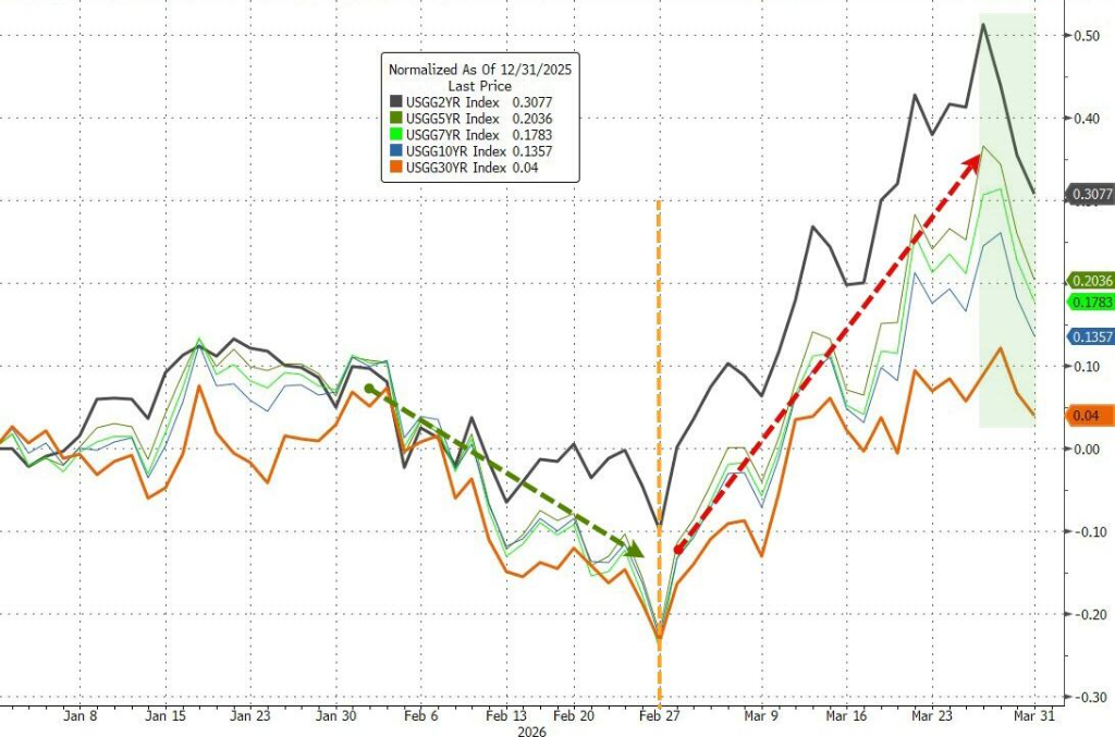 周二,10年期好意思国国债收益率降至4.310%,低于上周五创下的2026年高点4.439%。在约30万亿好意思元的国债市集上,资金正从"通胀担忧"向"增长忧虑"改造。