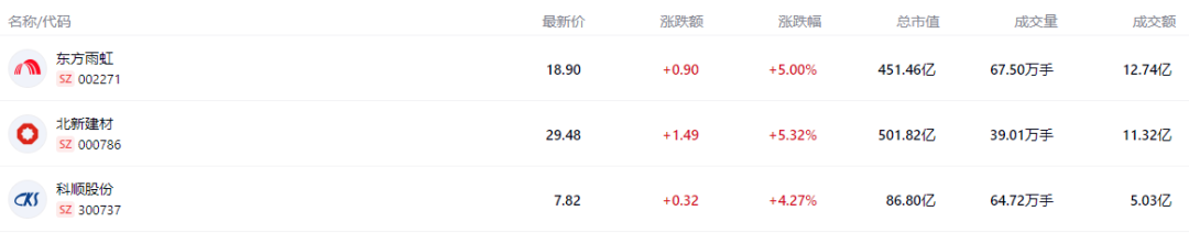 慧正资讯,2026年3月2日,防水板块成为老本阛阓一抹亮色:截止收盘,北新建材报收29.48元,飞腾5.32%,总市值501.82亿元;东方雨虹飞腾5.00%,收于18.90元,总市值451.46亿元;科顺股份报收7.82元,飞腾4.27%,总市值86.80亿元。