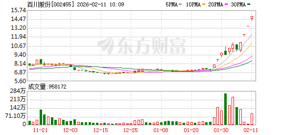 百川股份再度涨停,11个往将来内录得8个涨停,累计涨幅为105.69%,累计换手率为269.26%。赶走9:37,该股本日成交量9074.69万股,成交金额13.27亿元,换手率17.48%。最新A股总市值达88.13亿元,A股清醒市值77.00亿元。