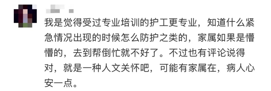 坚抓家东说念主陪护者则觉得:家东说念主陪伴是心里慰藉,老东说念主、重症患者见亲东说念主在侧才坦然。
