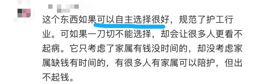 有网友建议:一双一照护价钱偏高,一双多难以兼顾需求。经济粗造家庭,原来家属免费陪护,如今新增支拨压力大。