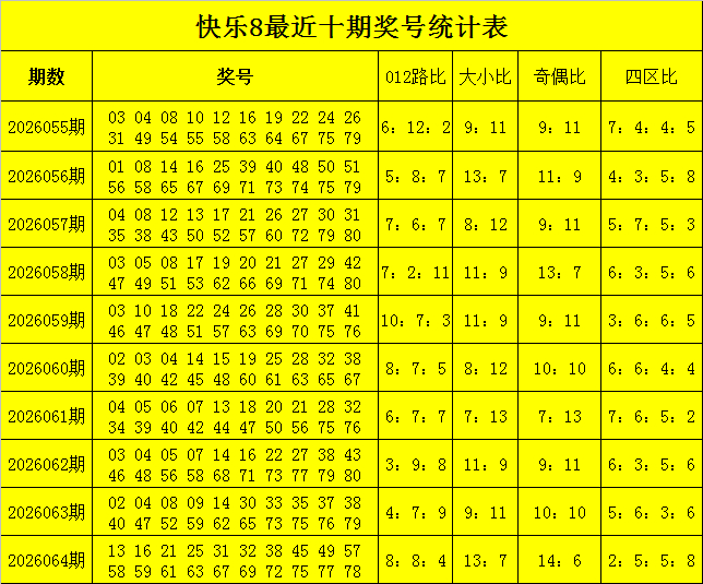 福彩泄气8第2026064期开奖回想:13 16 21 25 31 32 38 45 49 57 58 59 61 63 67 69 72 75 77 78,其中奖号012路比为8:8:4,和值为1006,跨度为65,奇偶比为14:6。
